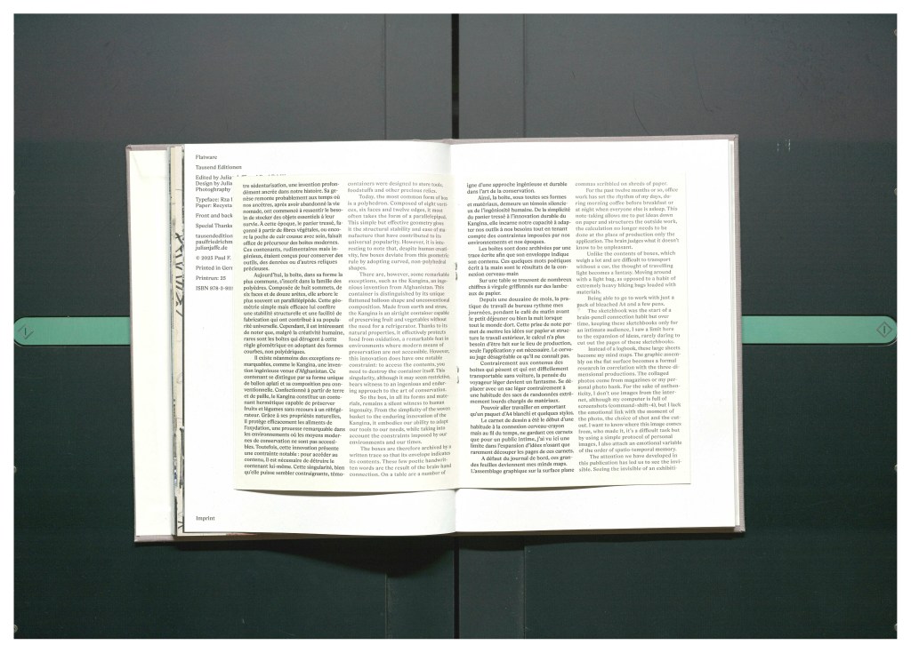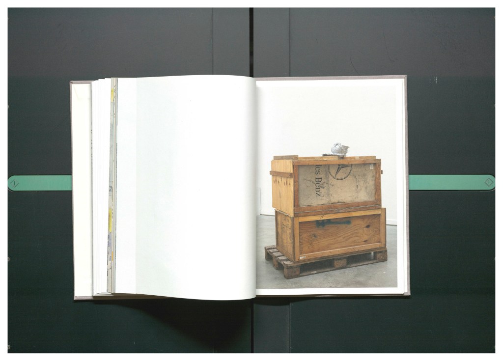 This artist’s book is the result of a reflection on the non-representation of objects during an exhibition. This « catalogue » illustrates the stages antecedents and preceding a work of art. Here we can contemplate portraits of transport crates made by the artist himself, named as fermentation boxes. This 54 photographic series by Julian Jaffé is complemented by a documentation of around 32 collages and photography by Paul F. Millet, revealing a few clues about the contents of these wooden quadrilaterals.