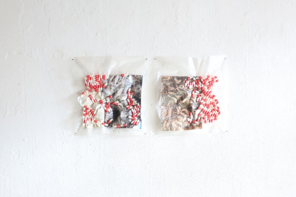 vacuum bag, pills, photography, drawing / 30x20cm / 2023