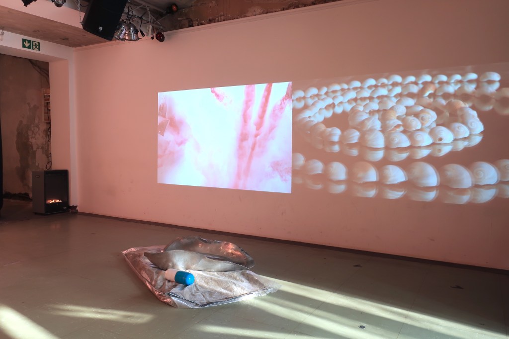 Im Loop dreht sich hypnotisierend eine Spirale aus Seeschnecken, eine Fibonacci Potenzierung.
