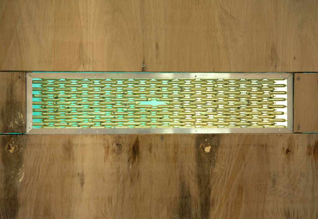 During the closing of the exhibition on October the 20th, absynth drinks were prepared and shared with the public, texts were read on the floor with a micro, near to the battery. The sugar caramelizes, crackles and melts in the bottom of the glass.